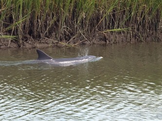 No long walkway is needed as the dock is 30 feet from the porch. The front of the house is less than 5 feet from the marsh (the decks overhang it) and the porch side about 20 feet. Dolphins are often first spotted by someone washing dishes in the kitchen. We have recently added a 16' x 16' deck by the dock.